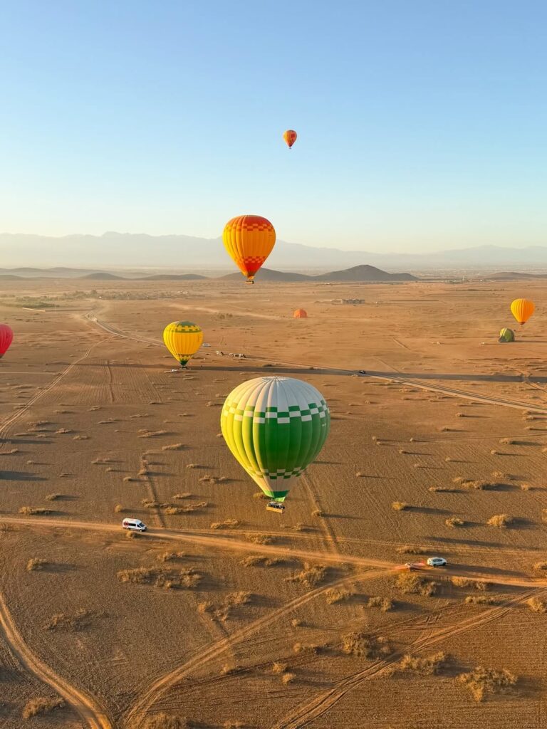 A hot air balloon ride is one of the most iconic experiences in Marrakech. The early morning atmosphere, the soft sunrise light, and the panoramic views make it a top choice for travelers looking for something peaceful, scenic, and memorable.